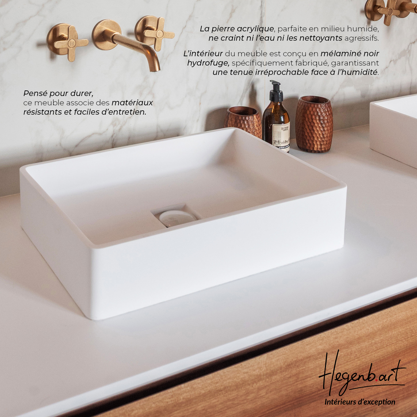 Meuble vasque sur mesure en noyer & pierre acrylique – Création artisanale près d’Aix-en-Provence