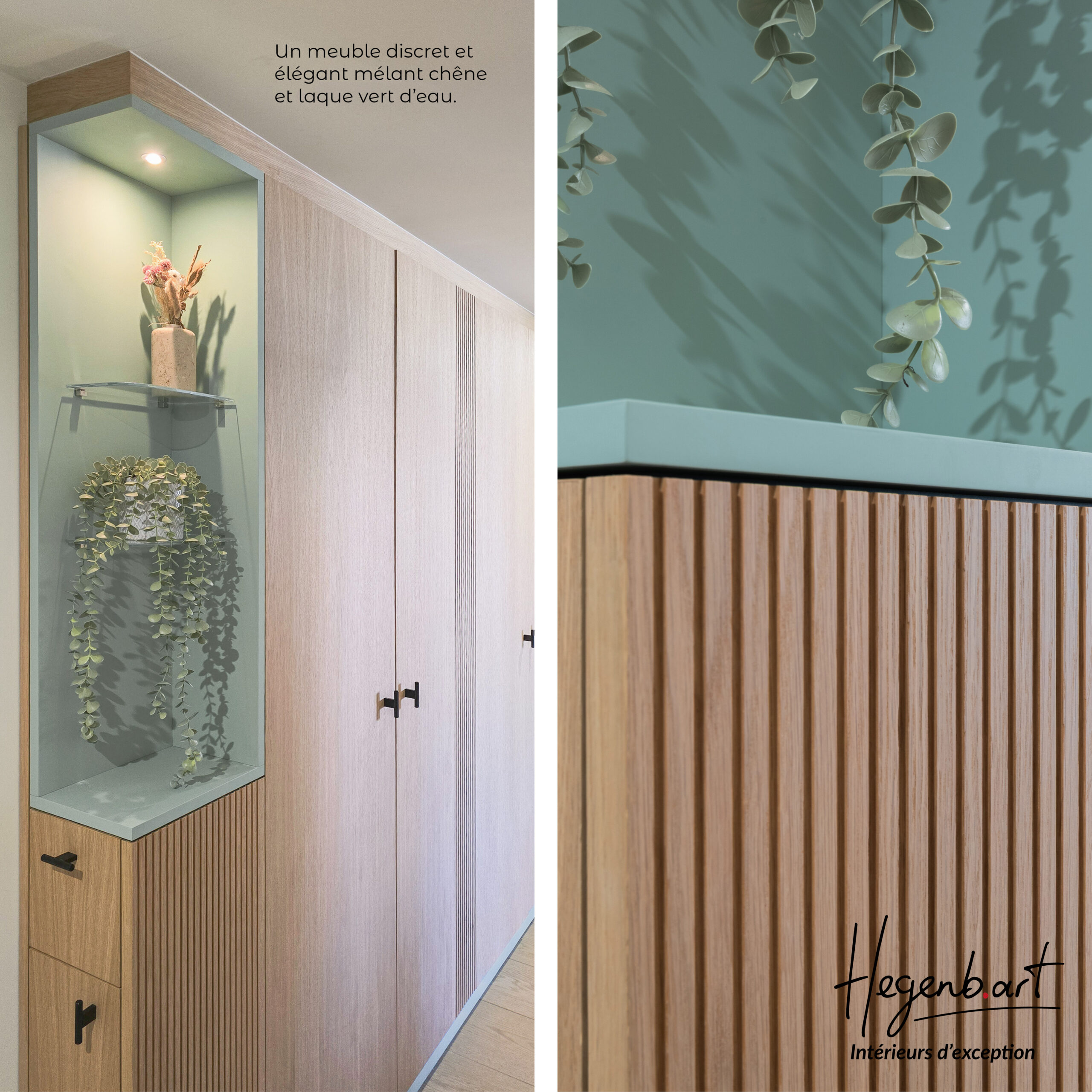 - Niche en médium laqué mat vert d’eau pour une touche douce et lumineuse